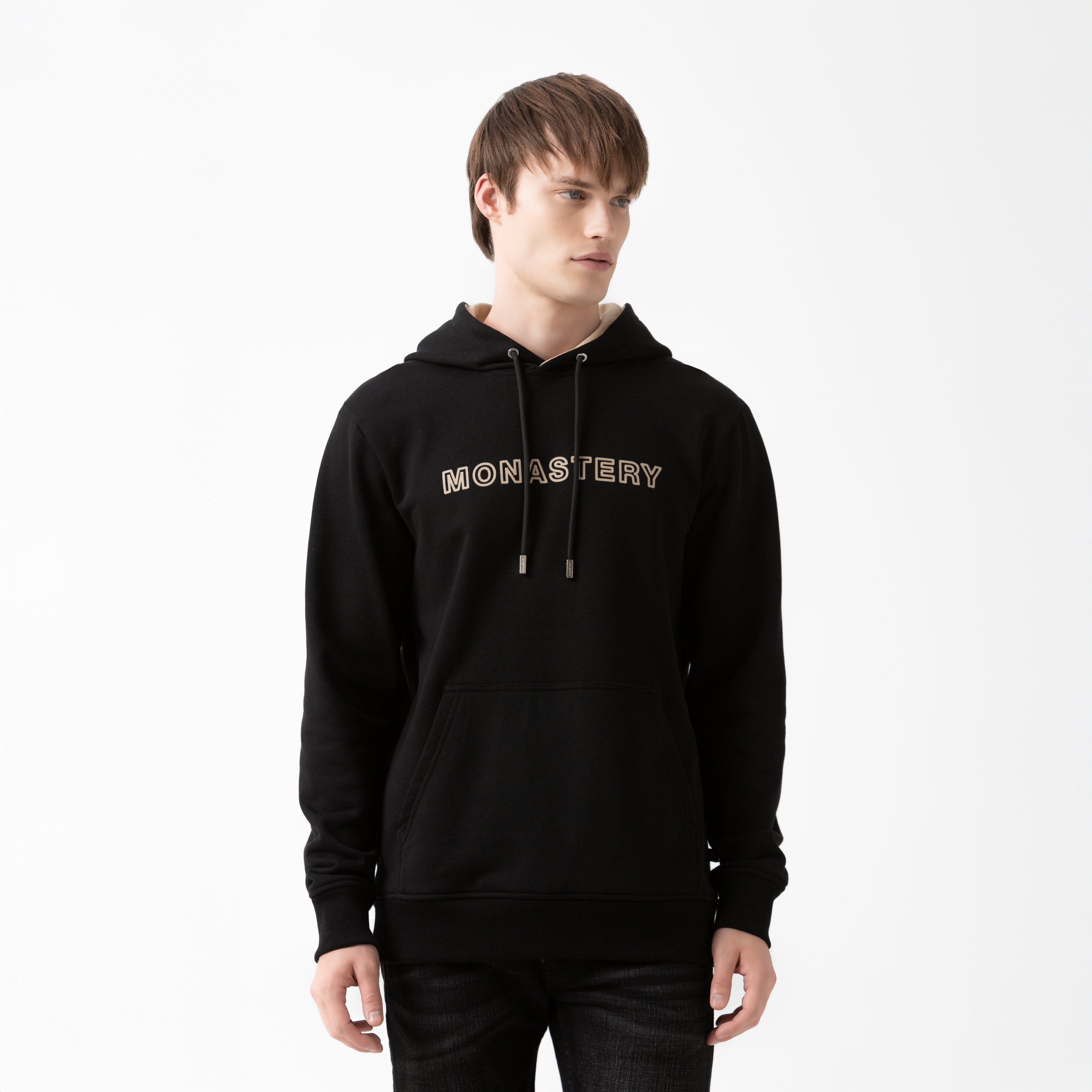 Men's hoodie crafted from high-quality black French terry, offering comfort, structure, and contemporary style.