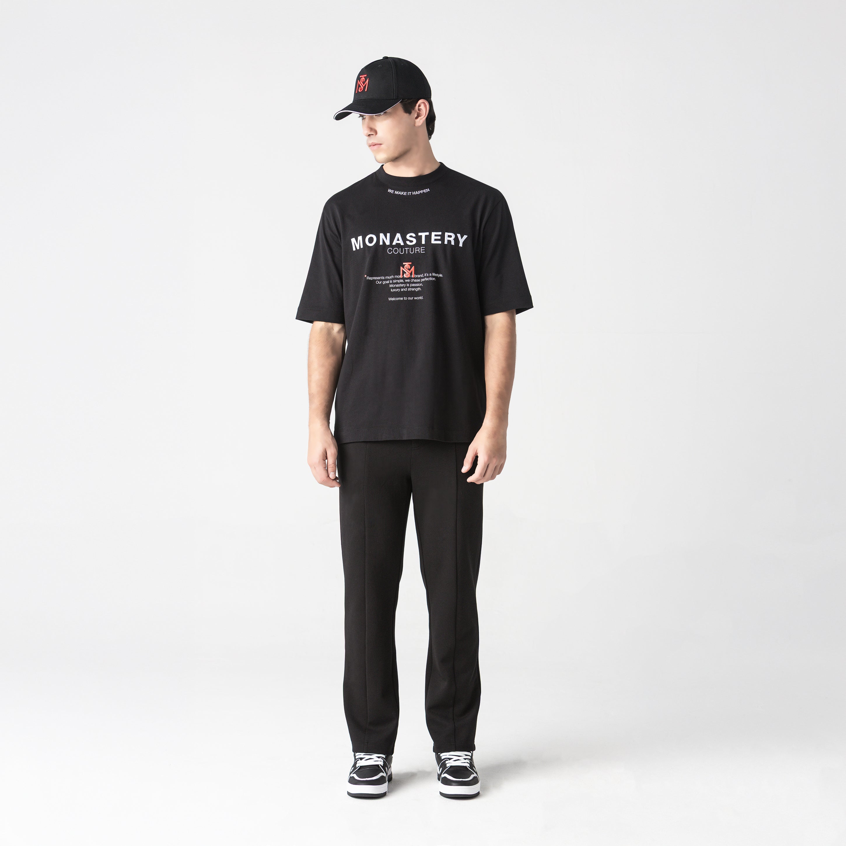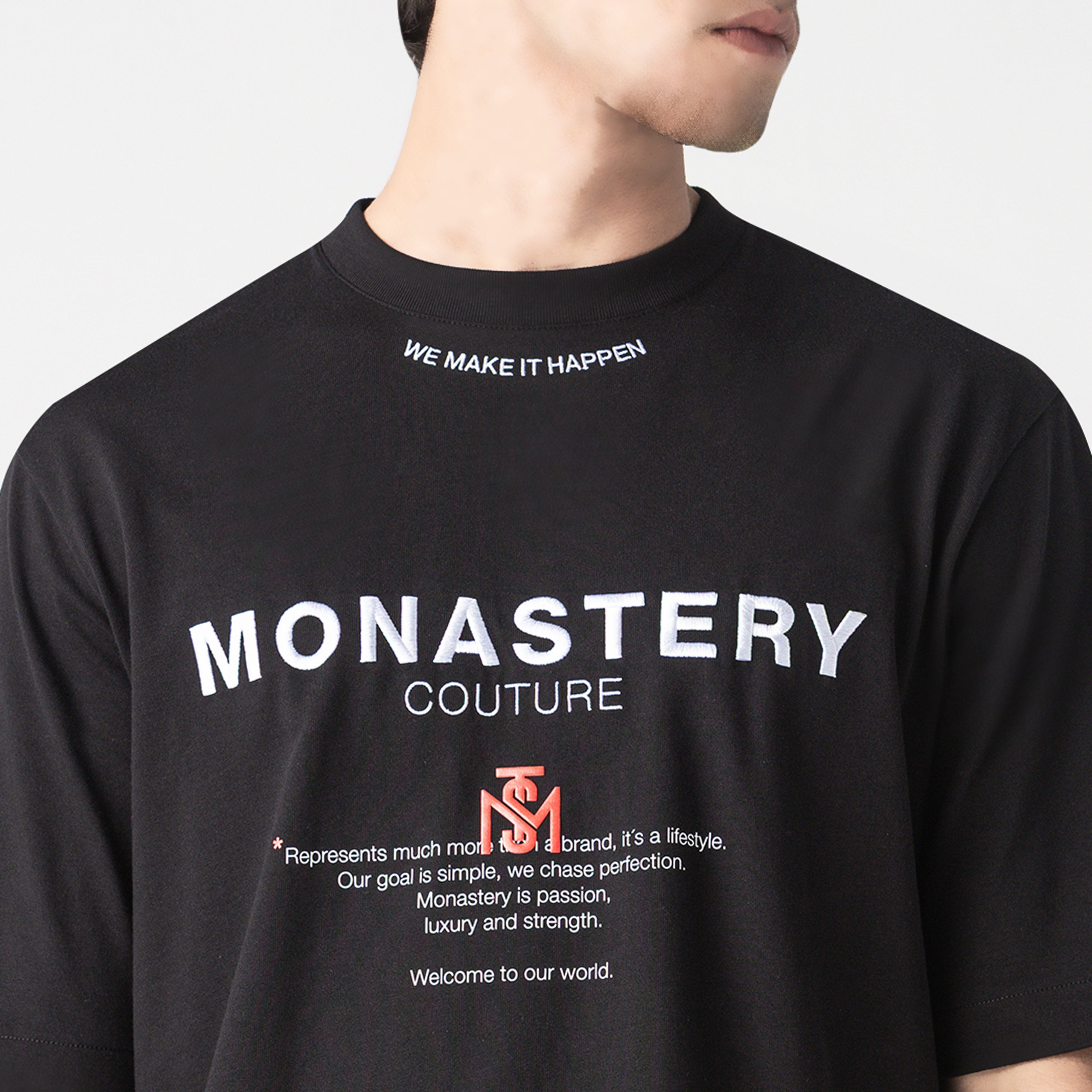 Men's oversized T-shirt with a 2.5 cm ribbed collar, made from high-quality, ultra-siliconized Peruvian cotton, offering superior softness, lasting comfort, and a flawless drape. Its relaxed fit adds presence and a sophisticated urban aesthetic.